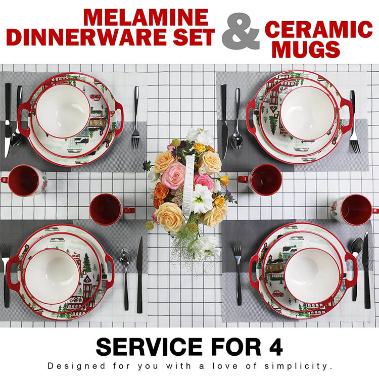 16 PCS లైట్ వెయిటెడ్ క్రిస్మస్ మెలమైన్ డిన్నర్వేర్ సెట్