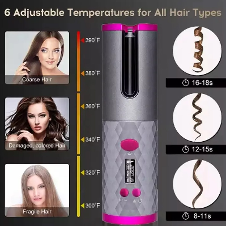 ✅సర్దుబాటు ఉష్ణోగ్రత మరియు టైమర్ సెట్టింగులు:అనుకూలీకరించదగిన వేడి మరియు సమయ సెట్టింగులు దాని రకం మరియు ఆకృతి ఆధారంగా జుట్టును రక్షించేటప్పుడు, వదులుగా ఉన్న తరంగాల నుండి గట్టి కర్ల్స్ వరకు వివిధ శైలులను సృష్టించడానికి మిమ్మల్ని అనుమతిస్తాయి.