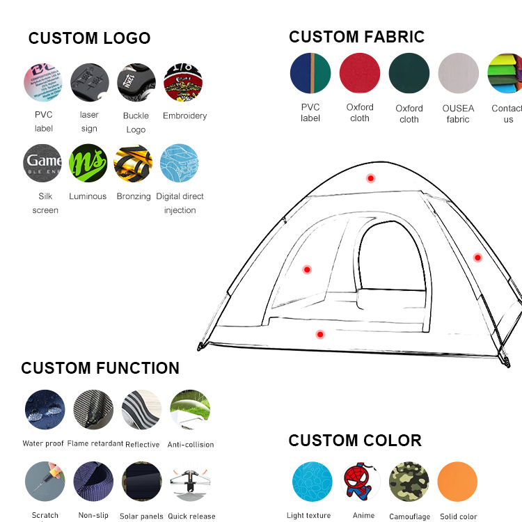 బలమైన, గాలి-నిరోధక ఫ్రేమ్లు మరియు UV-రక్షిత పదార్థాలతో నిర్మించబడిన ఈ టెంట్ ఎండ బీచ్ల నుండి గాలులతో కూడిన క్యాంప్గ్రౌండ్ల వరకు వివిధ వాతావరణాలలో నమ్మకమైన పనితీరును అందిస్తుంది.