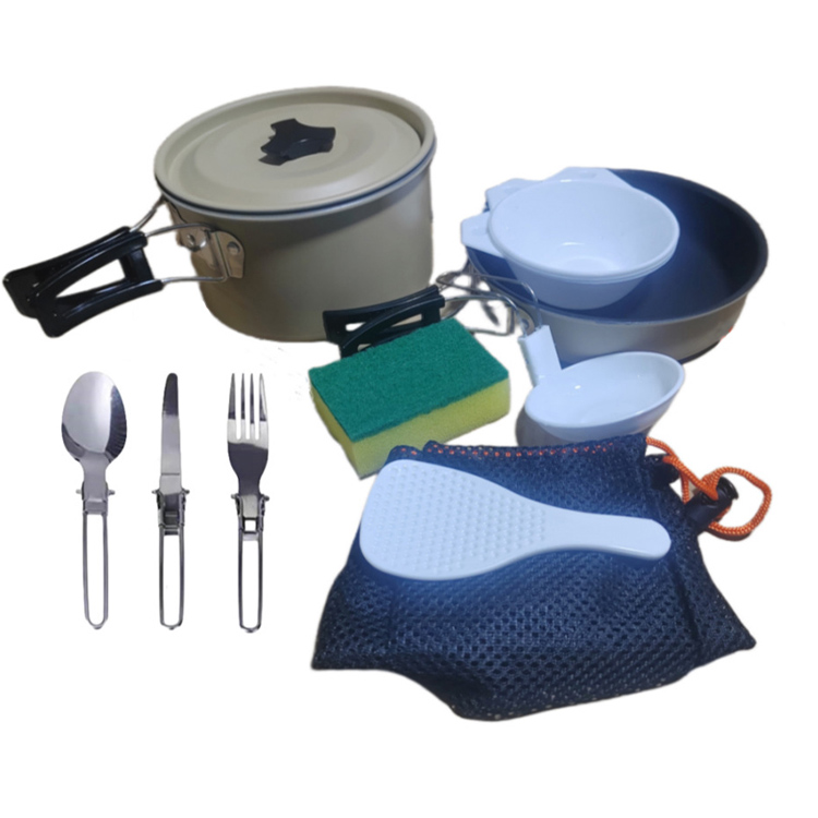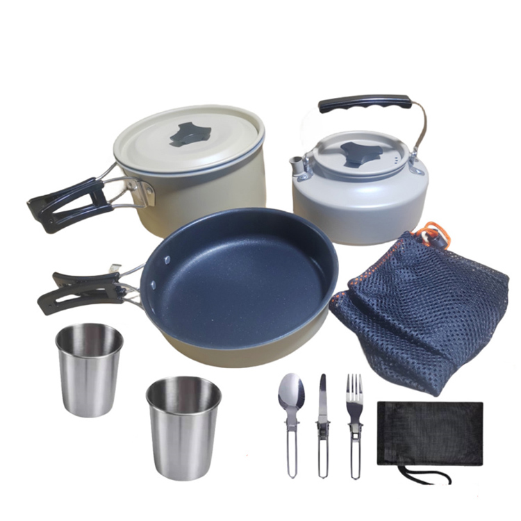 కేటిల్ పోర్టబుల్ కుకింగ్ పాట్ సెట్తో క్యాంపింగ్ కుక్వేర్ సెట్