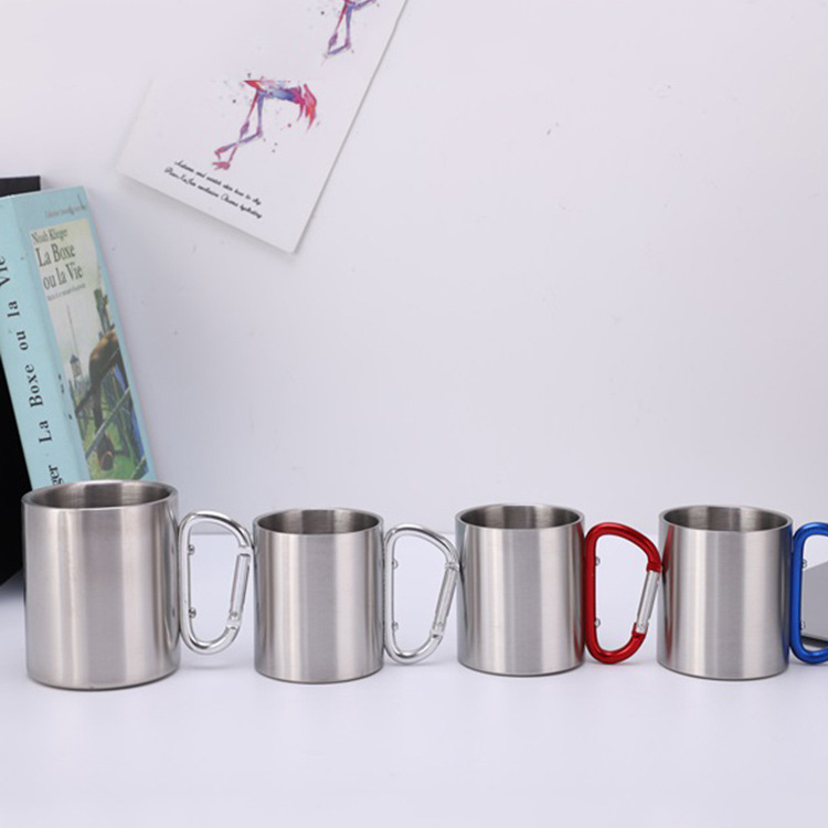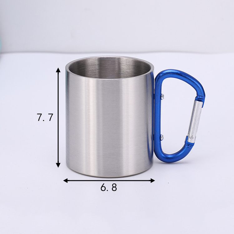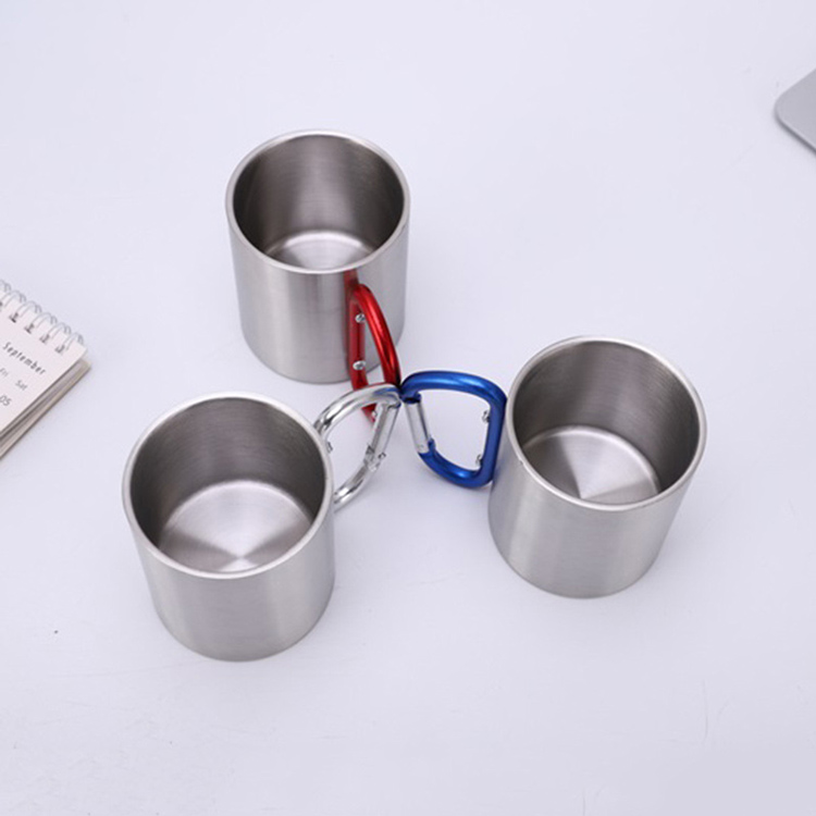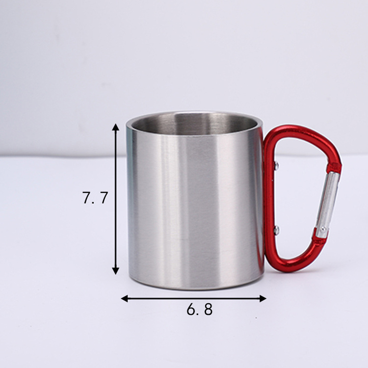 క్యాంపింగ్ డబుల్ వాల్ స్టెయిన్లెస్ స్టీల్ ట్రావెల్ టంబ్లర్ ఫ్లాస్క్. అవుట్డోర్ అడ్వెంచర్స్ కోసం మీ అల్టిమేట్ పోర్టబుల్ థర్మల్ సొల్యూషన్. ఈ 220ml స్టెయిన్లెస్ స్టీల్ టంబ్లర్ డబుల్-వాల్ వాక్యూమ్ ఇన్సులేషన్ మరియు అనుకూలమైన కారాబైనర్ హ్యాండిల్ను కలిగి ఉంది. ప్రయాణానికి పర్ఫెక్ట్, ఇది చల్లని మరియు వేడి పానీయాలు రెండింటికీ సరైన ఉష్ణోగ్రతను నిర్వహిస్తుంది.