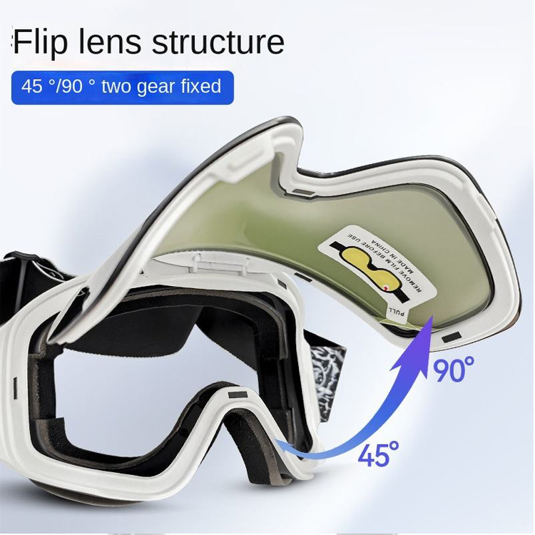 కస్టమ్ యునిసెక్స్ డస్ట్ప్రూఫ్ విండ్ప్రూఫ్ UV400 స్నోబోర్డ్ గ్లాసెస్. ఆల్-వెదర్ మౌంటైన్ స్పోర్ట్స్ కోసం మీ ప్రీమియర్ హోల్సేల్ సొల్యూషన్. ఈ యునిసెక్స్ స్నోబోర్డ్ గ్లాసెస్ UV400 టెక్నాలజీతో అధునాతన డస్ట్ప్రూఫ్ మరియు విండ్ప్రూఫ్ ప్రొటెక్షన్ను మిళితం చేస్తాయి. మిర్రర్డ్ పోలరైజ్డ్ లెన్స్లు మరియు రివల్యూషనరీ ఫ్లిప్ మాగ్నెటిక్ సిస్టమ్తో, వారు స్కీయింగ్ మరియు స్నోబోర్డింగ్ కోసం అసమానమైన విజువల్ క్లారిటీని అందిస్తారు.