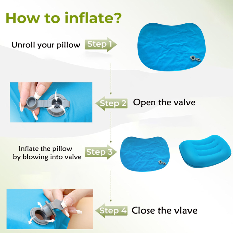మన్నికైన, చర్మానికి అనుకూలమైన TPU మెటీరియల్తో రూపొందించబడింది, ఇది పూర్తిగా వాసన లేనిది మరియు అద్భుతమైన గాలి నిలుపుదలని అందిస్తుంది, దిండు మొత్తం రాత్రంతా దాని ద్రవ్యోల్బణాన్ని నిర్వహిస్తుంది.