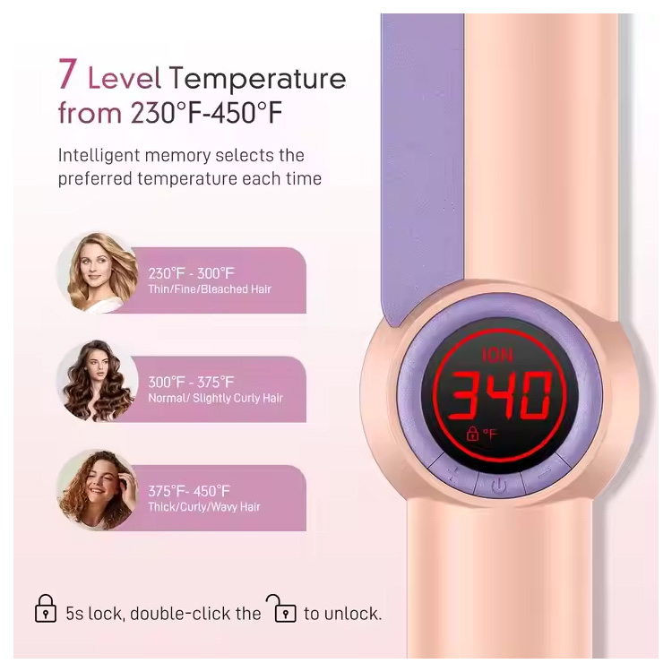 చక్కటి, మధ్యస్థ లేదా ముతక జుట్టుకు సరిపోయేలా అనుకూలీకరించదగిన హీట్ సెట్టింగ్లను కలిగి ఉంటుంది. మీరు స్ట్రెయిటనింగ్ చేసినా, కర్లింగ్ చేసినా లేదా ఊపుతూ ఉన్నా, వేడి దెబ్బతినకుండా సమర్థవంతంగా స్టైల్ చేయడానికి అనువైన ఉష్ణోగ్రతను ఎంచుకోవచ్చు.