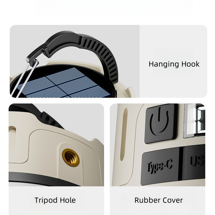 తయారీదారు యొక్క హై-క్వాలిటీ అవుట్డోర్ క్యాంపింగ్ LED టెంట్ ల్యాంప్. ఈ 2025 కొత్త మోడల్ అవుట్డోర్ సోలార్ క్యాంపింగ్ లైట్తో మీ సాహసాలను ప్రకాశవంతం చేయండి. హై-క్వాలిటీ LED లు, సోలార్ ఛార్జింగ్ మరియు బహుళ లైటింగ్ మోడ్లను కలిగి ఉంది, ఇది టెంట్లు, హైకింగ్, ఎమర్జెన్సీలు మరియు అవుట్డోర్ యాక్టివిటీలకు సరైనది-మీ విశ్వసనీయ కాంతి మూలం ఎక్కడైనా, ఎప్పుడైనా.