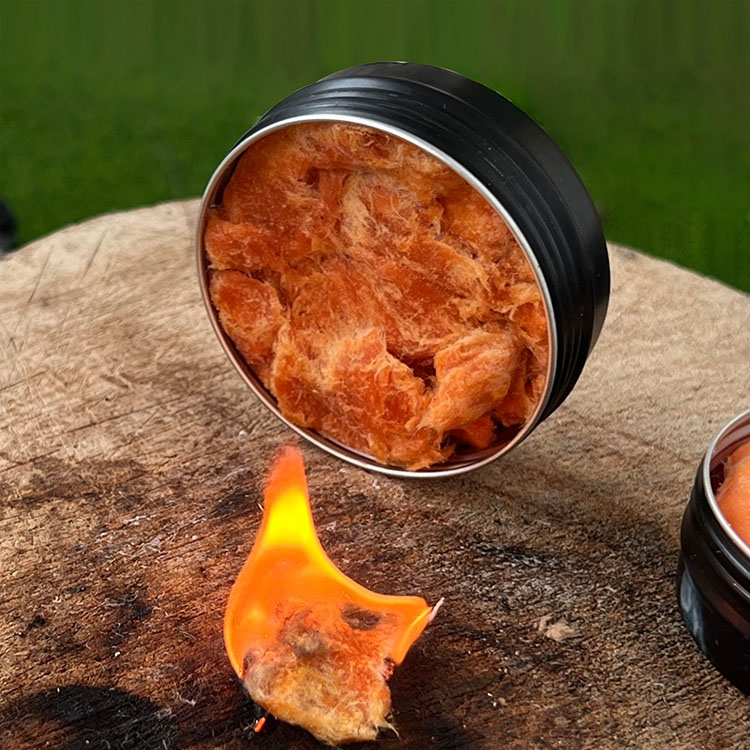జలనిరోధిత మైనపు మరియు ఖనిజ-ఆధారిత అగ్ని మట్టితో ప్రత్యేకంగా రూపొందించబడిన ఈ టిండర్ వర్షం, మంచు లేదా అధిక తేమకు గురైనప్పుడు కూడా వేగంగా జ్వలనను సాధిస్తుంది, ఇది క్లిష్టమైన మనుగడ పరిస్థితులలో ప్రారంభమయ్యే నమ్మకమైన అగ్నిని నిర్ధారిస్తుంది.