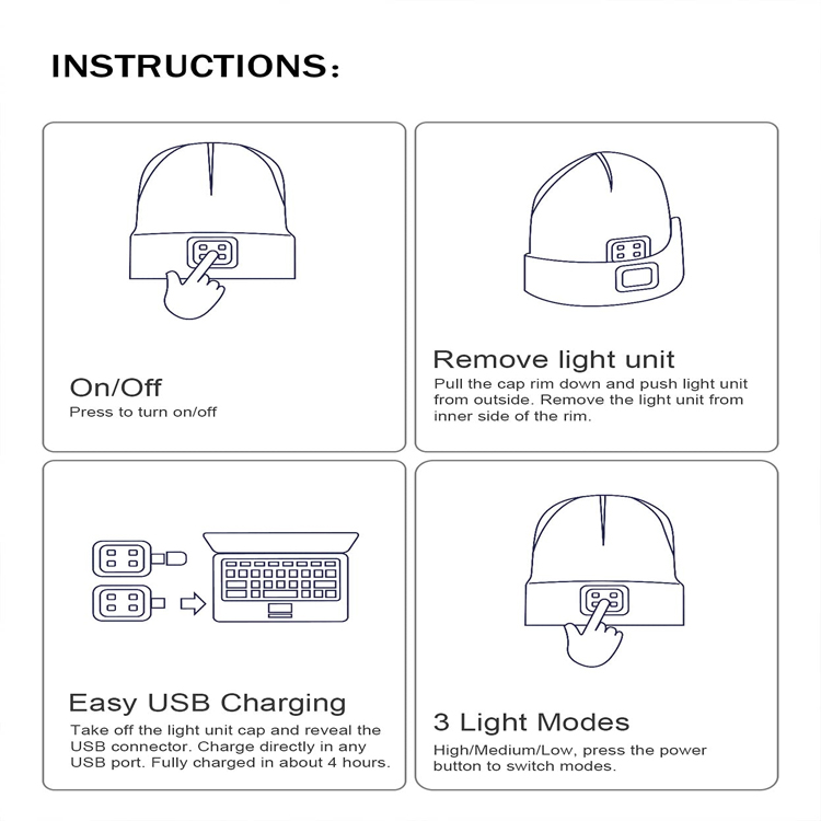 ఈ వినూత్న LED క్యాప్ ప్రకాశవంతమైన, ఫోకస్డ్ హెడ్ల్యాంప్ను సౌకర్యవంతమైన బీనీతో మిళితం చేస్తుంది, రాత్రిపూట కార్యకలాపాలు, మరమ్మతులు లేదా ప్రత్యేక హెడ్ల్యాంప్ అవసరం లేకుండా చదవడం కోసం పూర్తిగా హ్యాండ్స్-ఫ్రీ లైటింగ్ను అందిస్తుంది.