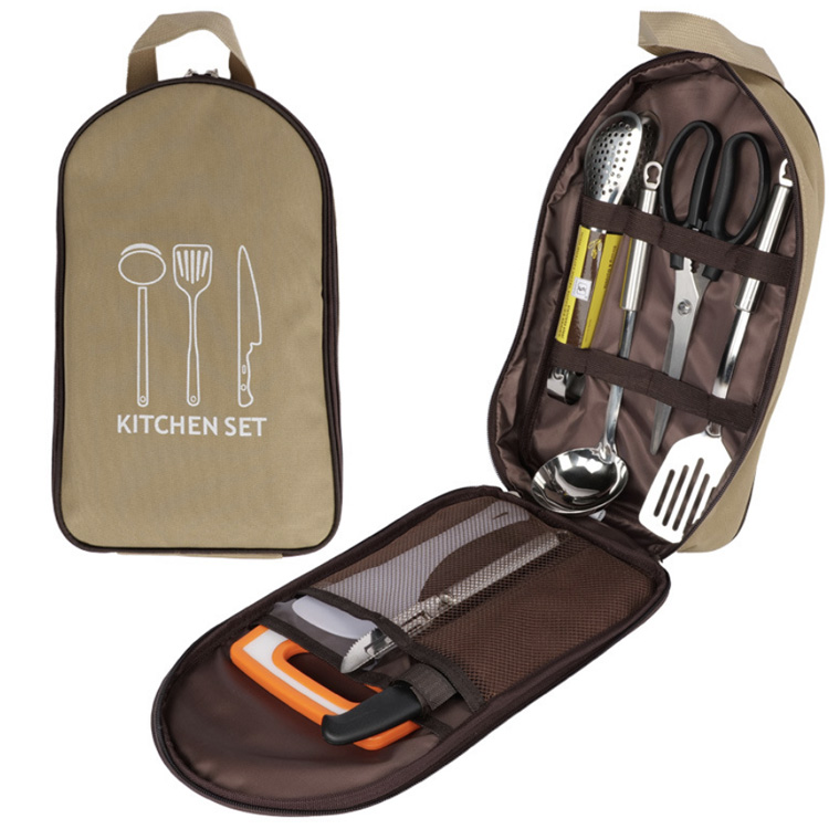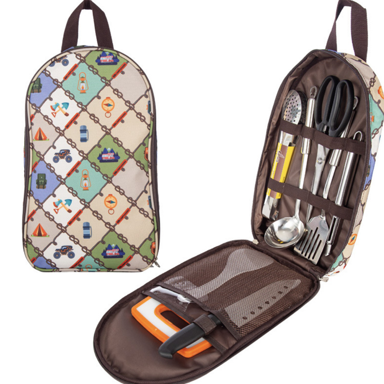 బహుళ ఇంటీరియర్ పాకెట్లు మరియు సాగే లూప్లు వంట పాత్రలు, కత్తిపీటలు మరియు చిన్న ఉపకరణాలతో సహా అన్ని సాధనాలను సురక్షితంగా ఉంచుతాయి, రవాణాలో ఏమీ కోల్పోకుండా చూసుకుంటాయి.