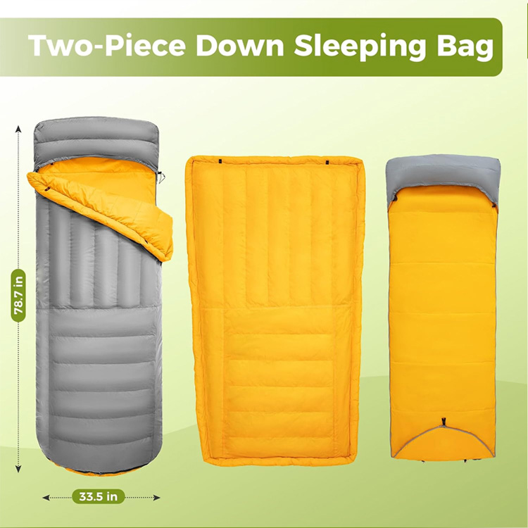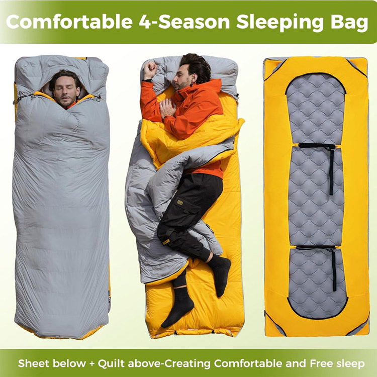 పూర్తి-నిడివిని వేరుచేసే జిప్పర్లను ఉపయోగించి సాంప్రదాయ మమ్మీ బ్యాగ్ నుండి బహుముఖ టాప్క్విల్ట్గా సులభంగా మారుస్తుంది, వివిధ నిద్ర ప్రాధాన్యతలను కలిగి ఉంటుంది మరియు వేరియబుల్ ఉష్ణోగ్రతల సమయంలో సౌకర్యవంతమైన కవరేజీని అందిస్తుంది.