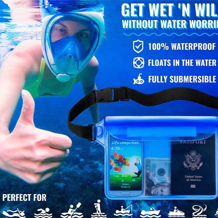 హై-ఫ్రీక్వెన్సీ వెల్డెడ్ సీమ్లతో అధిక-సాంద్రత కలిగిన 0.35mm PVC నుండి రూపొందించబడిన ఈ డ్రై బ్యాగ్ పూర్తిగా మునిగిపోవడాన్ని మరియు కఠినమైన వాతావరణ పరిస్థితులను తట్టుకునే అభేద్యమైన జలనిరోధిత అవరోధాన్ని సృష్టిస్తుంది.